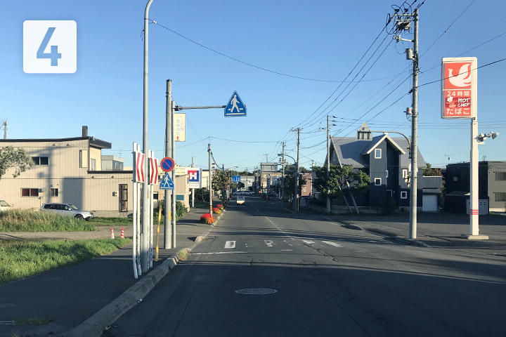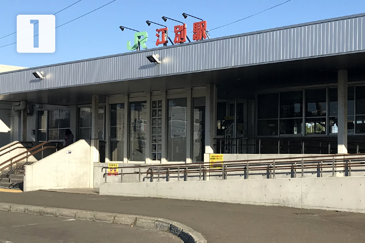 JR江別駅前を南方向(駅を出て左方向)へ進んでください。